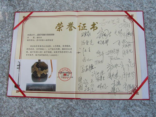 琴體采用蘇州傳統蟲膠擦漆工藝,手工拋光打磨,可清晰顯露出紫檀木細密的毛孔,整琴制作精致細膩,演奏手感非常舒適,上下換把輕松自如,有利演奏技巧的發(fā)揮